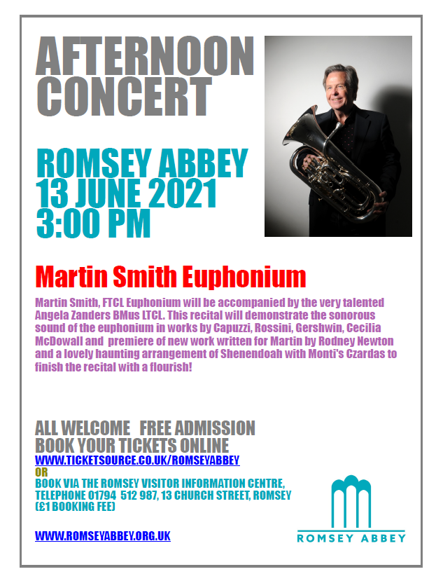 Martin Smith, FTCL Euphonium will be accompanied by the very talented Angela Zanders BMus LTCL.Euphonium Concert 13th June 2021Euphonium Concert 13th June 2021