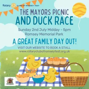 The Mayor’s Picnic plays a central part in raising the community spirit and is a fitting addition to the Romsey Festival. Individuals and families can enjoy an afternoon’s entertainment with groups playing on the bandstand, stalls, and activities organised by the Rotary Club of Romsey Test. You can help to raise money for various local charities too. Regular events in the popular afternoon include the duck race on the River Test, and obstacle course, raffles, draws and a variety of skills tests.